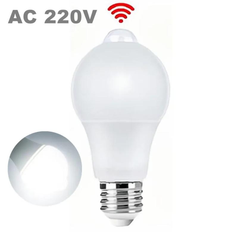 Cветодиодная лампочка е 27 с датчиком движения 12w свет белый от 220