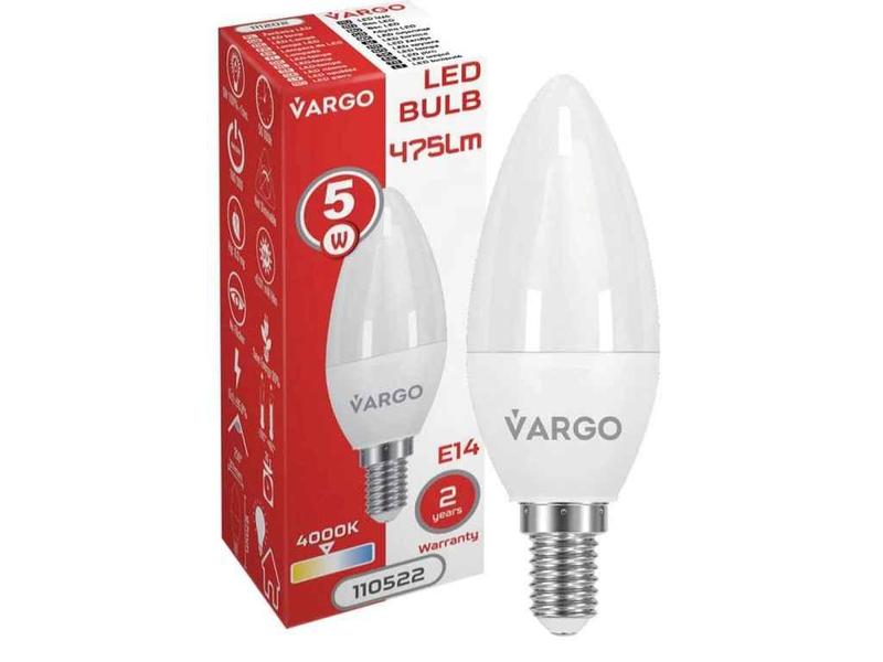 Лампа светодиодная 5w e14 c37 4000k 220v (v-110522) тм vargo
