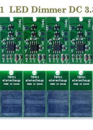 LED Dimmer DC 3.3-15V 30W LED Dimmer DC 3.3-15V Continuously adjustable brightness Driver for 3.7V 18650 Li - ion 5V 9V 12V Power supply Сенсорний вимикач, світлодіодний диммер постійного струму 3,3-15В/2A з плавним регулюванням яскравості. Світлодіодний контроллер драйвера на 3,7В/5В/6В/9В/12В. Характеристики: - Назва бренду : eletechsup - Номер моделі : TB411 - Напруга живлення : 3,5-13В - Потужність розсіювання : 10W - Вихідний струм: 30-2000 мА - Максимальна вихідна потужність: 26 Вт - Споживаний струм привыключении : 10ua - Розміри: 31 x 15 x 3 мм - Робоча температура: - 20...85°C - Вес: близько 1,3 гр. Опис: Доторкнутися до сенсорної області, натиснути один раз - включити, натиснути ще раз - вимкнути. При включенні - безперервне торкання зменшує яскравість, безперервне торкання знову збільшує яскравість.