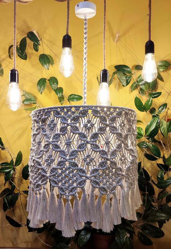 Вітаю! Пропоную готову люстру, виконану в сучасній техніці макраме. Параметри: діаметр 40 см, висота абажуру 45 см, загальна висота 80 см довжину дроту можно коригувати). Колір: бежевий Матеріал: 100% кручена хб мотузка Комплектація: металеві кільця з хрестовиною під патрон, світлокомплект (патрон, дріт, кріплення для стелі) Достатньо прибрати лампочку потрібного кольору та прикріпити люстру до стелі! !! Важлива примітка: фото виробів власне! Цим самим я демонструю вам якість/рівень власної майстерності. Обирайте свого майстра по його власних роботах, а не прикладах з просторів інтернету. Вартість макраме виробів з натурального матеріалу наразі не може коштувати дешево, ціна за 100м матеріалу коливається в рамках 150-250грн, на виріб витрачається в середньому 300-500м. Середній термін виконання роботи 15-20 годин, тобто 2-3 робочі дні Бажаю вдалих покупок