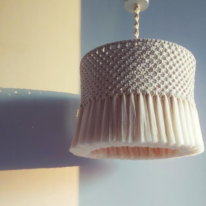 Вітаю. Вашій увазі пропоную люстру виконану в техніці макраме з пухнастими китицями. Діаметр 40 см, висота абажуру 50см (30см/20см). Довжина дроту може коливатися за потребою ( до 1м). Матеріал плетення хб шпагат 4мм. До комплекту входить світлокомплект - патрон, дріт, кріплення до стелі. можливе індивідуальне виконання фото роботи мої