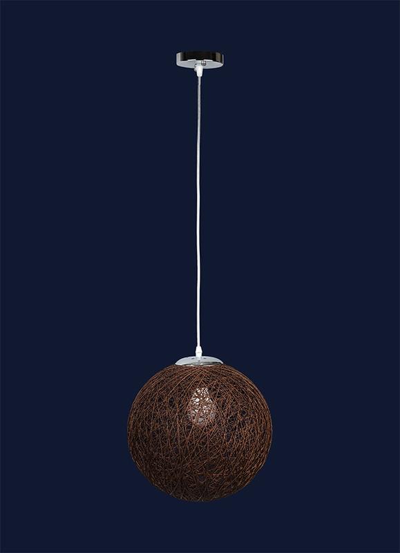 Подвес на одну лампу в стиле модерн Цвет плафона: кофейный Материал плафона: нить Размеры плафона: 300х300мм Размер потолочного крепления: 100мм Тип цоколя: Е27