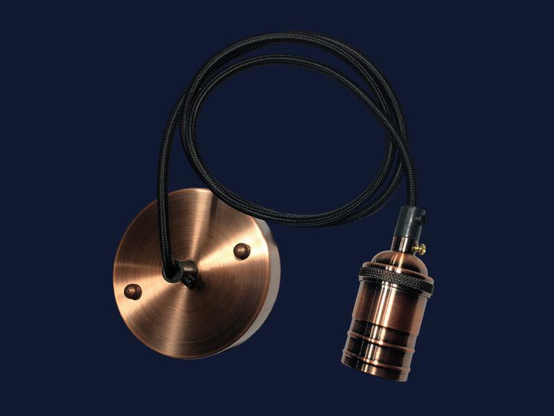 Подвес на одну лампу в стиле LOFT Цвет основания: красная медь Цвет провода: чёрный (возможен любой цвет из нашей линейки) Цвет патрона: красная медь Материал: металл Размер потолочного крепления: 100мм Длина провода: стандарт - 1 метр (возможна любая длина) Тип цоколя: Е27