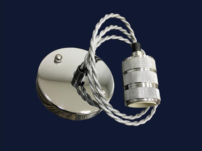 Подвес на одну лампу в стиле LOFT Цвет основания: хром Цвет провода: серебряный витой (возможен любой цвет из нашей линейки) Цвет патрона: хром Материал основания: металл Материал патрона: алюминий Размер потолочного крепления: 100мм Длина провода: стандарт - 1 метр (возможна любая длина) Тип цоколя: Е27