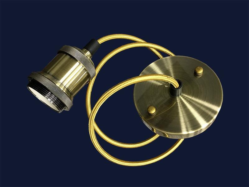 Подвес на одну лампу в стиле LOFT Цвет основания: бронза Цвет провода: золото (возможен любой цвет из нашей линейки) Цвет патрона: бронза Материал основания: металл Материал патрона: алюминий Размер потолочного крепления: 100мм Длина провода: стандарт - 1 метр (возможна любая длина) Тип цоколя: Е27