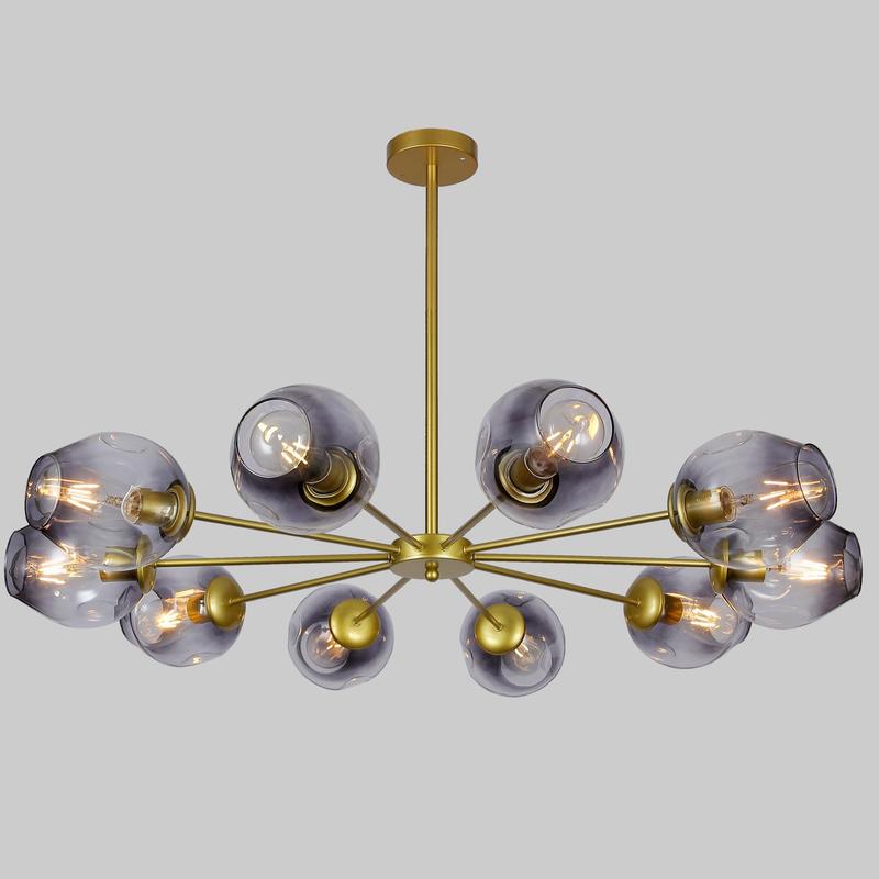 Круглая золотая люстра на 10 чёрных молекул (52-6039-10 gd+bk)