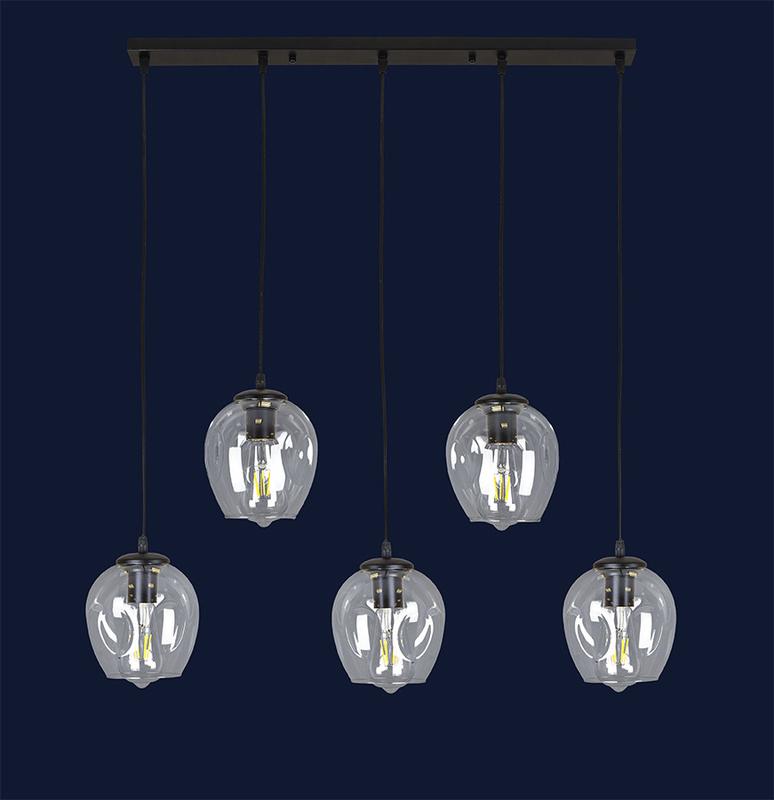 Материал люстры: металл+стекло Цвет люстры: черный+прозрачный Количество плафонов - 5 Размер плафона - 145x160мм Тип крепления - потолочный планка Крепление к потолку (основание) цвет - черный Материал крепления - металл Источник света - 5 ламп Е27 Максимальная мощность лампочки 60 Ватт Возможность использования лампы: LED, накаливания, энергосберегающая Комплектация лампочками: Нет Тип люстры - подвесная Производитель Levistella
