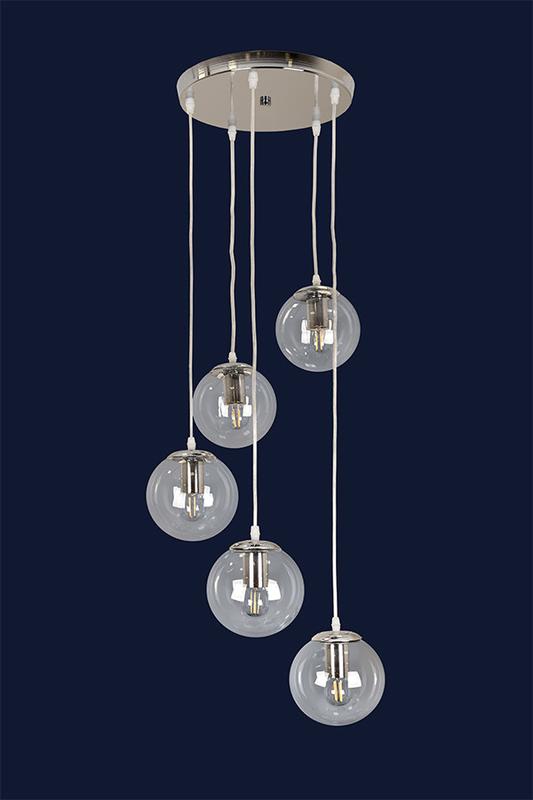 Материал люстры: металл+стекло Цвет люстры: хром+прозрачный Количество плафонов - 5 Размер плафона - 150 мм Тип крепления - потолочный круг 290 мм Крепление к потолку (основание) цвет - хром Материал крепления - металл Источник света - 5 ламп Е27 Максимальная мощность лампочки 40 Ватт Возможность использования лампы: LED, накаливания, энергосберегающая Комплектация лампочками: Нет Тип люстры - подвесная Производитель Levistella