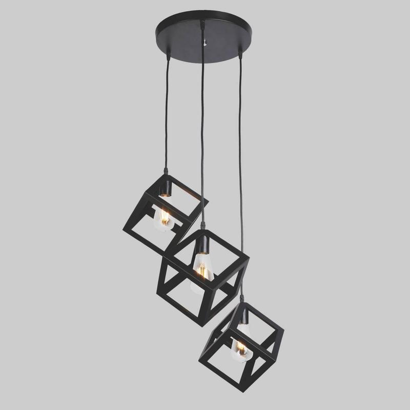 Интересная и стильная люстра идеально дополнит ваш интерьер. Уникальная люстра подойдет к интерьеру в стиле лофт, минимализм и модерн. Она будет идеально дополнять вашу спальню, гостиную, кухню в вашем доме/квартире или, например, кафе, ресторане. Корпус сделан из металла и покрыт черной краской, его дополняют металлические черные плафоны в виде кубиков, что создаст стильный акцент. Регулируется длина каждого подвеса отдельно, благодаря чему вы можете установить высоту люстры максимально комфортно. Люстра рассчитана на 3 лампы и будет давать достаточно освещения для помещения 10-15 кв.м. - Материал - металл - Цвет - чёрный - Тип цоколя - Е27 - Источников света - 3 - Размер плафона - 160х160мм (ш/в) - Размер основания (круг) - 30см - Высота регулируется