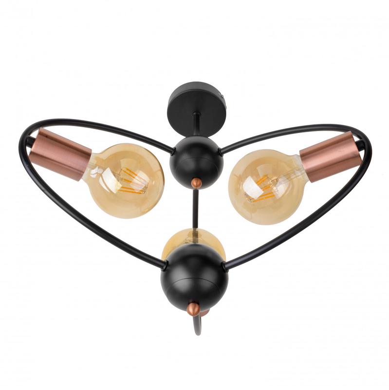 Люстра на 3 лампочки BL-997S/6 E27 BK + AC это современная потолочная модель, предназначенная для освещения гостиной, спальни, холла, ресторана или кафе. Она отличается стильным дизайном корпус модели изготовлен из черных металлических прутьев, которые соединяются сверху и снизу вокруг маленьких сфер и составляют эллипсоид. К ним прикреплены 3 патрона с золотым покрытием. Черный цвет хорошо сочетается с контрастным золотым, люстра имеет футуристический вид. Модель изготовлена без плафонов. Для ее работы нужны 3 лампочки с цоколем Е27 мощностью 60 Вт. Можно использовать светодиодные, энергосберегающие или лампочки накаливания. В такой люстре эффектно будут выглядеть декоративные лампочки. Класс защиты корпуса светильника составляет IP20, это значит, что его можно устанавливать в помещениях с нормальным уровнем влажности. Люстра крепится к потолку с помощью монтажной планки. Высота изделия 41 см, такая модель подойдет для помещений с невысокими потолками.