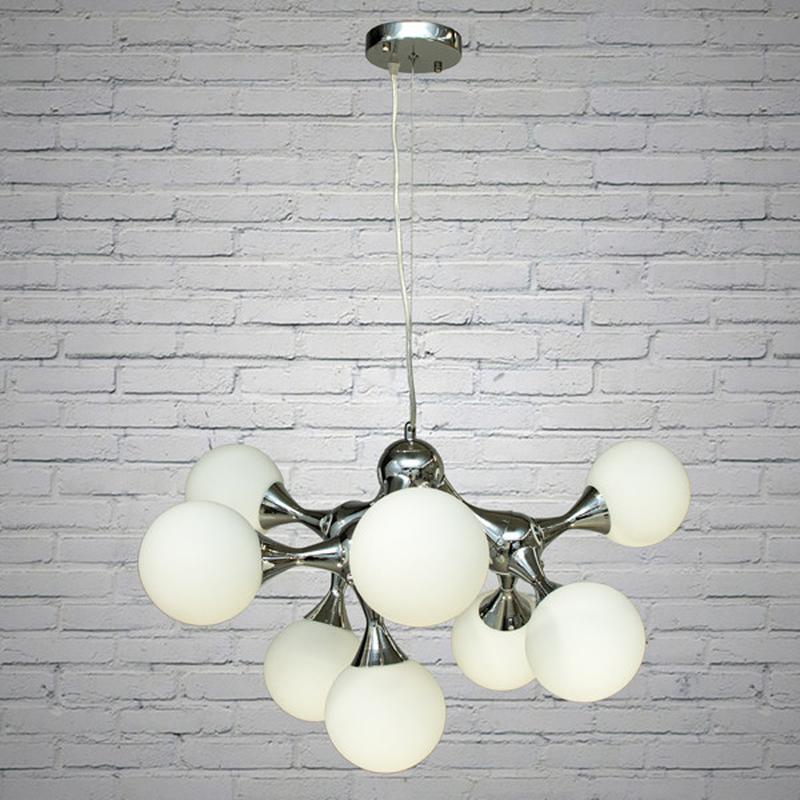 Короткий і в той же час дуже стильний дизайн цієї люстри на 9 ламп у стилі лофт підійде для цінителів мінімалізму та свободи думки в інтер'єрі. Стиль «Лофт» зараз дуже популярний, його люблять як творчі особистості, так і дуже практичні люди, які віддають перевагу комфорту і простоті в інтер'єрі. Люстри в стилі «лофт» ідеально впишуться в сучасні будинки, квартири, кафе, арт-простір, коворкінги, квеструми. За рахунок регулювання шнура можна вибрати оптимальну висоту світильника. В отличие от привычной люстры-молекулы, эта люстра укомплектована более изящными небольшими матовыми плафонами. Люстра специально разработана под светодиодные лампы стандарта G45 с цоколем Е27.