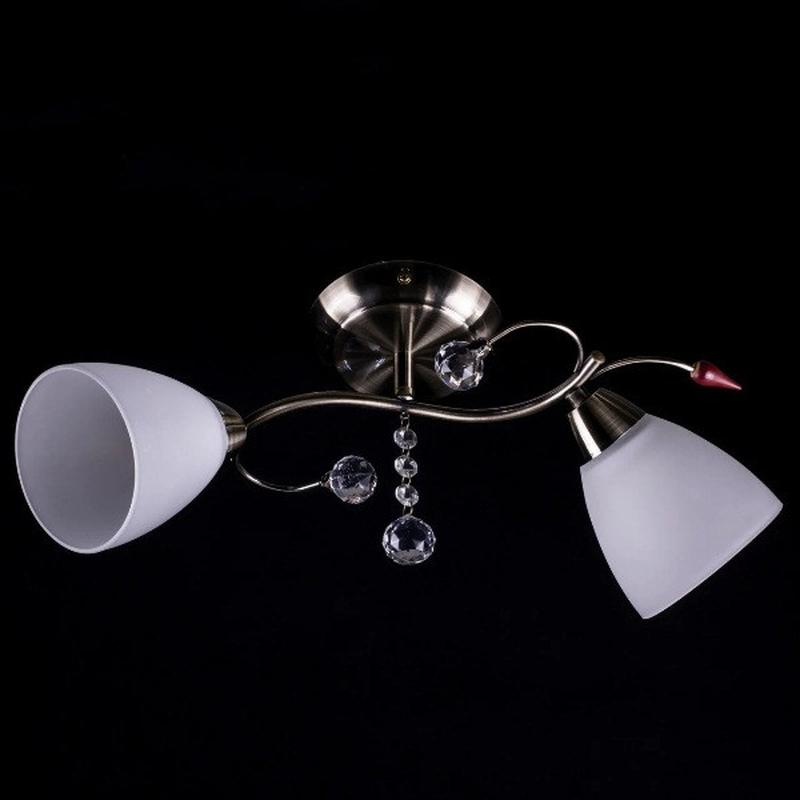 Люстра стельова на дві лампочки відмінно підійде як на кухню або вітальню так і в спальню або робочий кабінет. Завдяки кольору каркасу бронза з елементами декору дана люстра чудово підійде до будь-якого інтер'єру. У свою чергу на люстрі є декоративна підвіска із кришталю, яка додасть Вашому інтер'єру розкоші. Плафони виготовлені з матового скла. Патрони типу Е27 з кераміки зарекомендували себе своєю довговічністю, надійністю та стійкістю до перепадів температур та напруги. Ви без будь-яких проблем зможете використовувати потужну лампочку в даній люстрі. Придбати лампочки до люстр ви також можете у нас на сайті. Також під цю люстру ми можемо допомогти Вам підібрати бра. Люстра пристібна на дві лампочки. Колір каркасу: хром. Колір плафона: матовий. Патрон Е27 керамічний Ширина люстри: 460 мм; Висота люстри: 210 мм.