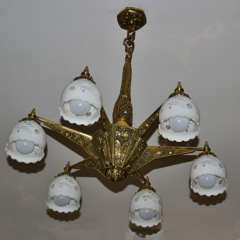 Потолочная бронзовая люстра Ар-деко. Размер 80 х 60 см В рабочем состоянии