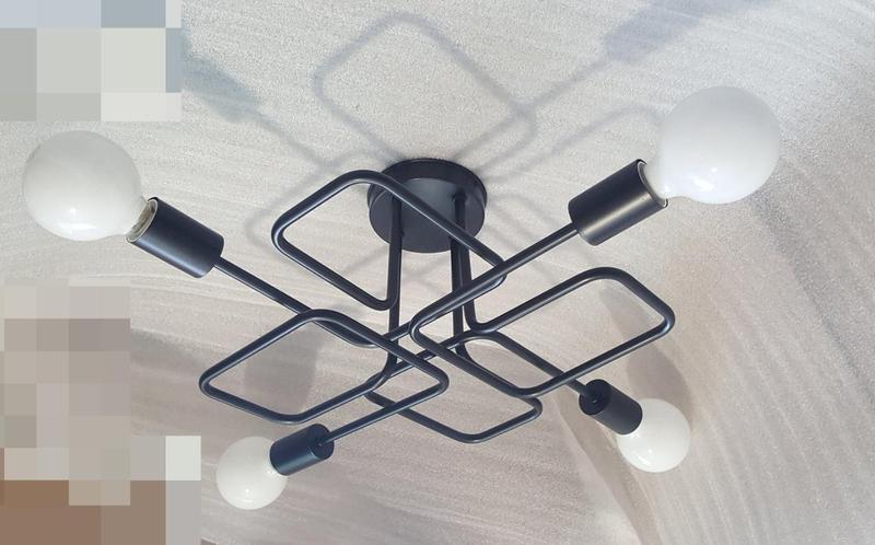 Дуже красива та стильна люстра на 4 лампи 3D💡 Матеріал сталь Цоколь е27 Колір чорний,при замовленні іншого кольору +50 грн Порошкове фарбування. Розмір 52 см х 52 см ,висота 20 см Лампи у комплект не входить,на фото не плафони ,а лампочки. Гарантія 3 роки. Виробник компанія "СвітлоСтиль". Висилаємо без передоплати.