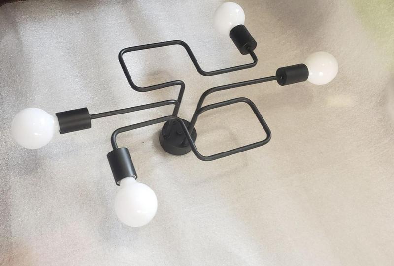 Люстра Розмір 50 см х 30 см висота до стелі 18 см ,що дозволяє монтаж у кімнатах з низькими стелями ! Цьокол стандартний е27 підійдуть як звичайні так і лед лампи. Лампи в комплект не входять ! Виробник Україна Колір чорний Гарантія 3 роки Підходить для натяжних стель