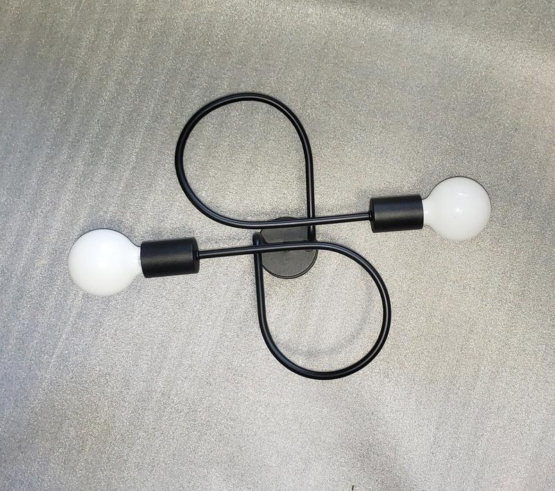 Світильник у стилі лофт на 2 лампи. Виготовлено в Україні. Матеріал сталь. Колір чорний, при замовлені іншого кольору + 50 грн Цоколь Е27 Розмір 44 х 40 см, висота 18 див. Діаметер кільця 16 см Лампі у комплект не водять. На фото не плафони,а лампі Висилаємо без передоплати . Гарантія 3 роки
