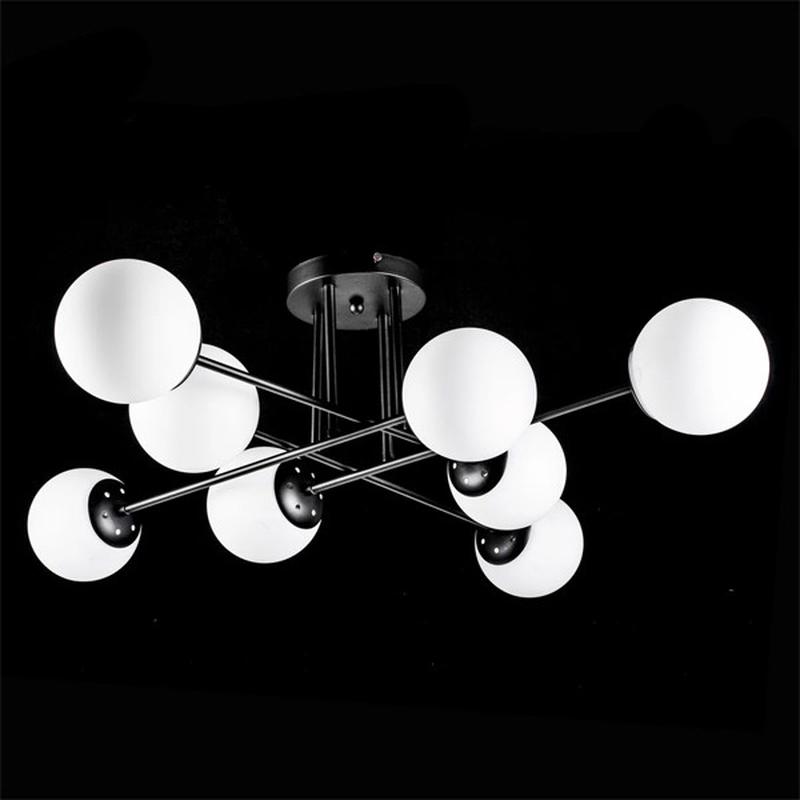 Стельова люстра в стилі лофт стане чудовим доповненням для сучасного інтер'єру як вітальні або спальні, так і для інтер'єру передпокою або обідньої зали. Каркас люстри пофарбовані в чорний колір. Плафони даної моделі виготовлені з міцного скла білого кольору. Патрони виготовлені з кераміки, що дозволяє використовувати потужні лампочки. Керамічні патрони зарекомендували себе надійними, довговічними та стійкими до перепадів напруги. Максимальний розмір лампочки - G45. Плафони кріпляться на затискачі. У комплекті люстри йде кріплення на кшталт "планка". Люстра постільна на вісім лампочок у стилі лофт. Колір каркасу: чорний матовий. Колір плафона - білий. Тип патрона Е27 (керамічний). Тип кріплення - планка. Висота люстри - 240 мм Діаметр люстри - 840 мм макс.