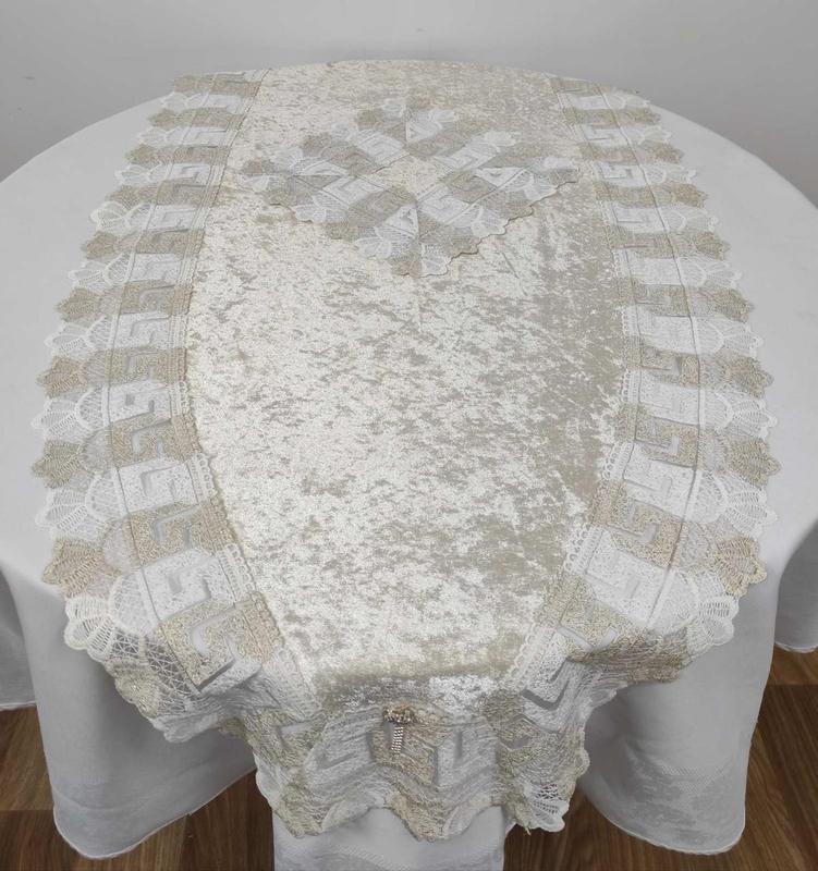 Невероятно роскошная велюровая дорожка с изысканным кружевом! Это великолепный декор, который преображает внешний вид стола, делая его изящным и благородным! Дорожкой-раннером украшают комоды, журнальные столики, тумбы и другие поверхности в интерьере! Производитель: ТМ Acme Tekstil(Турция). Возможное отклонение в заявленном размере +-3%.