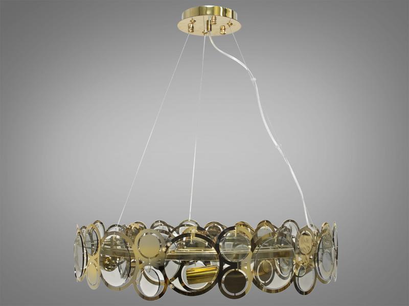 Эта роскошная подвесная люстра является воплощением уникальности и изысканности. Каждый стеклянный диск, обрамленный полированной металлической оправой, искрится бликами и отражениями, как звезды на ночном небе. Эти элементы не просто отражают свет, но и рассеивают его, создавая эффект тепла, роскоши и глубины в пространстве, где она занимает место. Люстры идеально впишутся в современные дома, квартиры, кафе, арт-пространства, коворкинги, квеструмы. За счет регулировки шнура можно подобрать оптимальную высоту светильника. Лампы для светильника Вы можете выбрать сами, таким образом Вы можете регулировать яркость и цвет свечения.