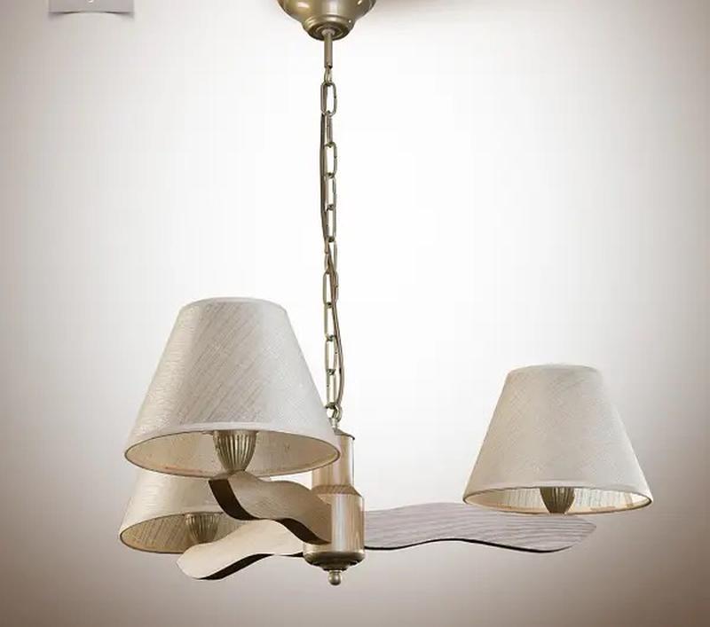 Стиль исполнения Модерн Категория товара Люстра Метод крепления Потолочный Тип цоколя Е14 Мощность ламп 40 W Количество ламп 3 Высота 710 мм. Минимальная высота 350 мм. Ширина / диаметр 670 мм. Ширина (диаметр) Верх 160 мм. Материал Дерево Цвет светильника Бежевый- золото - дерево