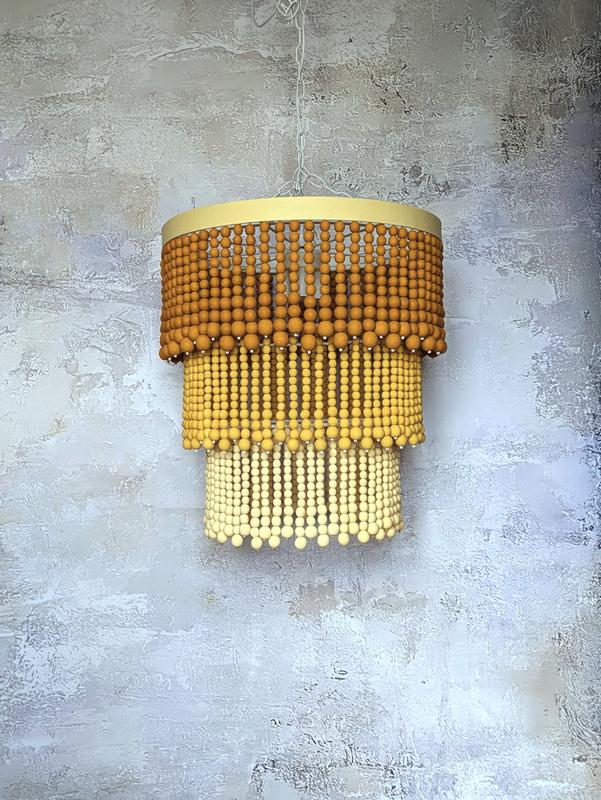 Люстра из натуральных деревянных бусин. Бусины окрашены вручную специальной минеральной краской. Каркас - металл. По желанию заказчика можно изменить размер, оттенок, расположение ярусов. В комплектации потолочная розетка и проводка под 1 лампу. По желанию можно увеличить до 6 шт. Цена зависит от размера и количества ярусов (возможно от 2 до 5). Дополнительные характеристики: Материал каркаса: нержавеющая сталь Товар под заказ