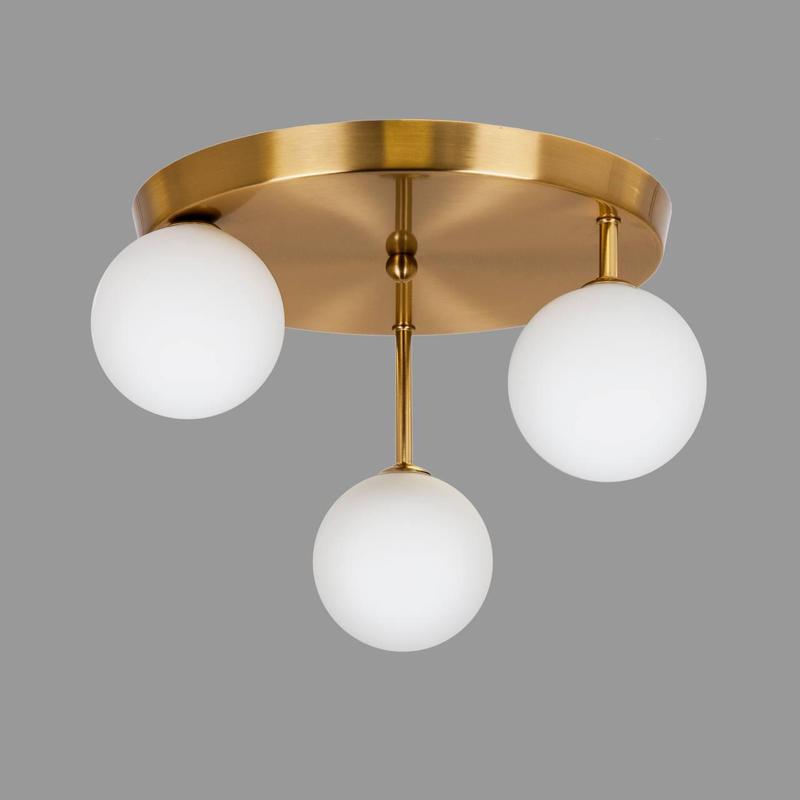 Интересная и стильная потолочная люстра идеально дополнит ваш интерьер. Уникальная люстра подойдет к интерьеру в стиле арт-деко, минимализм, модерн и т.д. Она будет идеально дополнять вашу спальню, гостиную, кухню в вашем доме/квартире или, например, кафе, ресторане. Корпус сделан из металла и покрыт бронзовой краской, его дополняют стеклянные белые плафоны, что создает стильное сочетание. Данная модель подойдет для низких и стандартных потолков, высота люстры не регулируется. Люстра рассчитана на 3 лампы и будет давать достаточно освещения для помещения 10-15 кв.м. - Материал - металл, стекло - Цвет основания - бронзовый - Цвет плафона - белый - Источников света - 3 - Тип цоколя - G9 - Потолочное основание - 30см - Диаметр плафона - 10см - Высота не регулируется - 21см Интернет-магазин освещения ***************