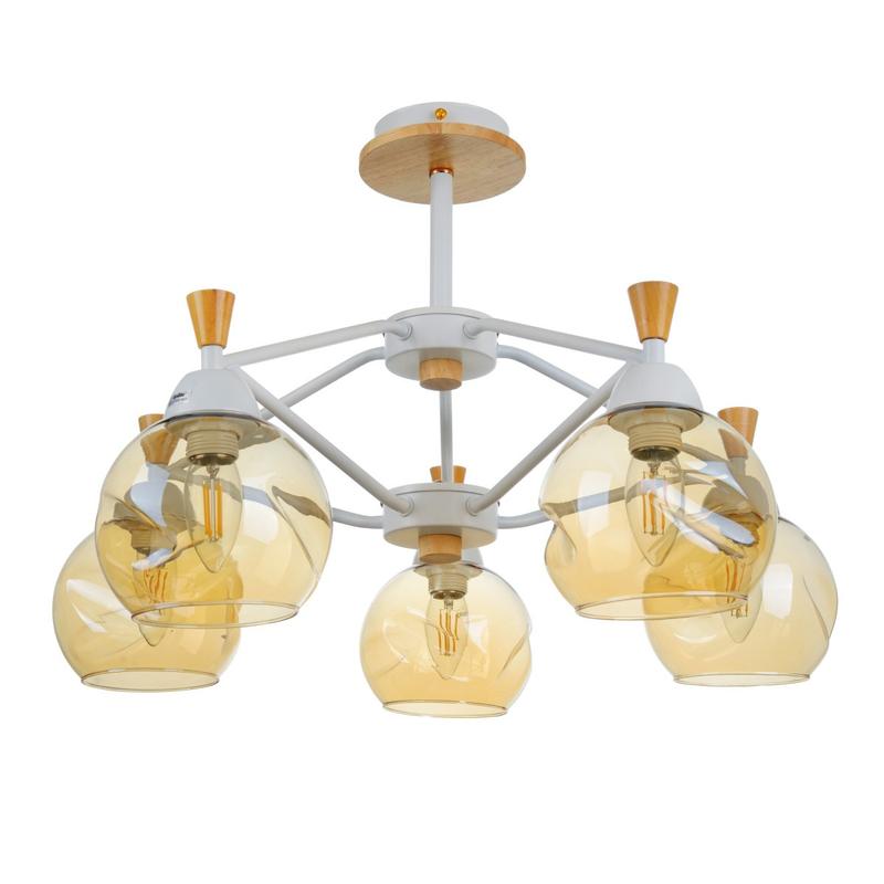Люстра на п'ять плафонів BL-586S/5 E27 WH+BR виготовлена з різних матеріалів, тут прекрасно поєднуються метал, скло і дерево. Сам каркас створений з металу білого кольору. До його нижньої частини на рівному віддаленні один від одного кріпляться 5 відкритих плафонів трішки затемненого кольору. Для роботи люстри потрібні лампочки, вибір досить широкий - від економічних світлодіодних моделей, до звичних зі спіраллю розжарювання. Потужність лампочки - 60 Вт, цоколь Е27. Прикрашають люстру вставки зі світлого дерева, органічно вписані в загальну концепцію. Лампа підійде для приміщень зі світлими тонами декору. Більше асортименту - в категорії Люстри, інші світильники - в розділі Освітлення, лампочки тут. Купити товар ви можете як на сайті, так і в магазинах Києва та інших міст України. На всю продукцію діє гарантія. Поради про те, як вибрати люстру читайте в статті.