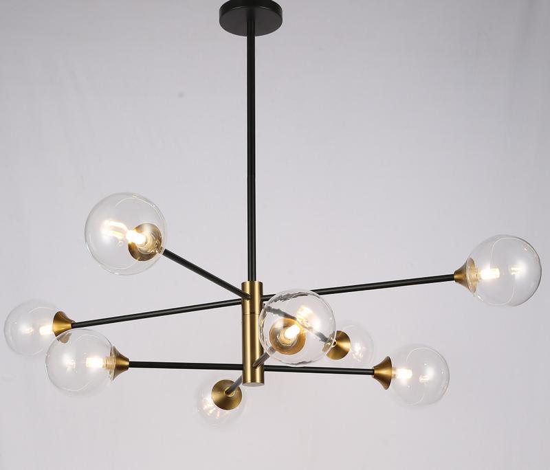 Чёрная люстра из прозрачных шаров на 8 ламп (52-l7910-8 bk+cl)