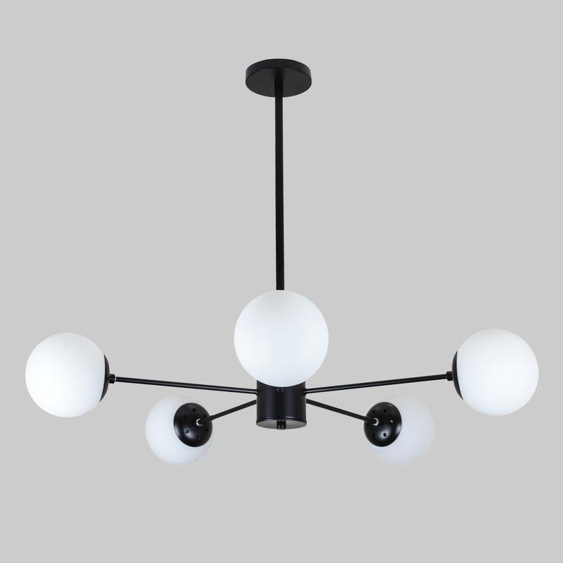 Черная современная люстра на 5 белых плафонов (52-9807-5 bk+wh)