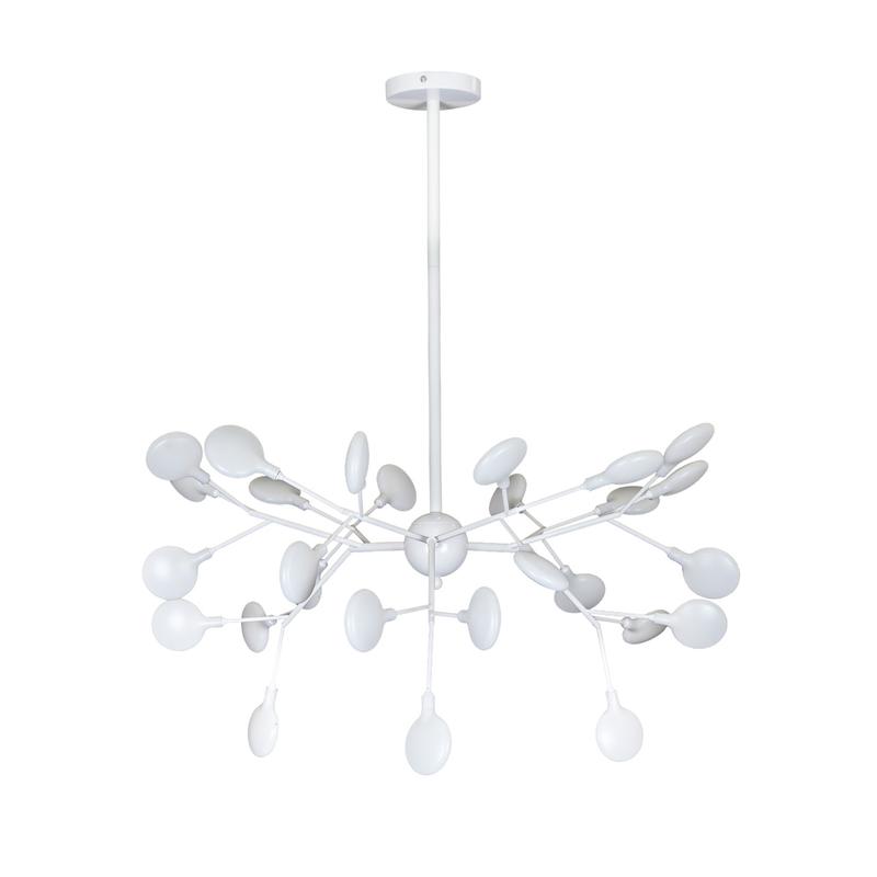 Материал люстры: металл Материал плафона: пластик Цвет люстры: белый + белый Диаметр люстры: 700 мм Высота (макс.): 800 мм (осевая трубка: 200мм + 300мм) Тип крепления - потолочный круг 120 мм. Тип люстры - подвесная на стержне Материал крепления - металл Источник света - 27 ламп G4 В комплекте лампочка G4 1W - в подарок.