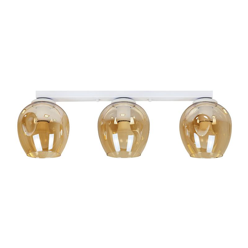 Источник света: 3 Размер плафона: 150x150мм Длина потолочной планки: 500мм. Высота: 180мм Тип цоколя: Е27 Цвет: белый + коричневый Материал: металл+стекло