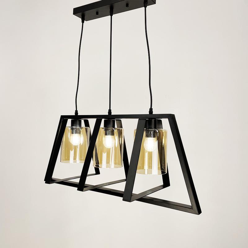 Люстра в стиле Лофт на 3 янтарных плафона Цоколь Е27 Длина 76 см Высота регулируется