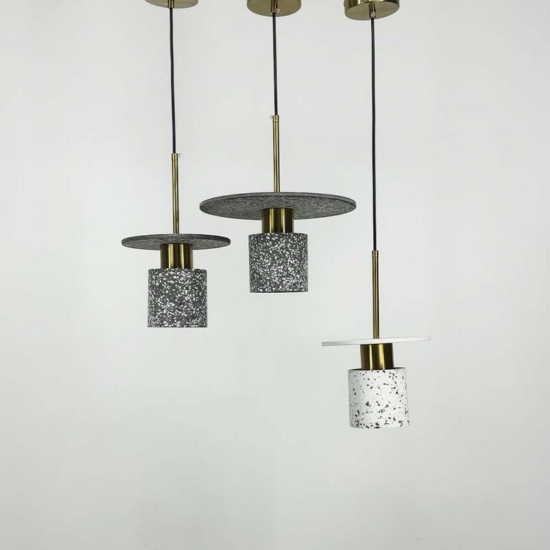 Надзвичайна колекція підвісних світильників Terrazzo Cylinder у стилі Ар-деко. Ці світильники вражають своїм дизайном - це ідеальне поєднання металевого латунного корпусу із бетонною фурнітурою. Дуже витончений зовнішній вигляд, мінімалістичний і разом з тим виглядають як вінтажні сучасні світильники. Ці підвісні світильники, виготовлені з металу в кольорі латунь та бетонних плафонів (10,5х11 см) з цоколем Е27. Загальна висота корпусу світильника - 34 см. Світильники Terrazzo Cylinder мають дві варіації корпусу із діаметром верхнього накладного кола 20 та 30 см. Також ці світильники представлені у 2-х кольорах бетону: сірий та білий. Завдяки цьому вони стануть чудовим доповненням для більшості інтер'єрів як одинично, так і доповнюючи один одного. Є можливість регулювати загальну висоту світильника від 37 до 180 см.