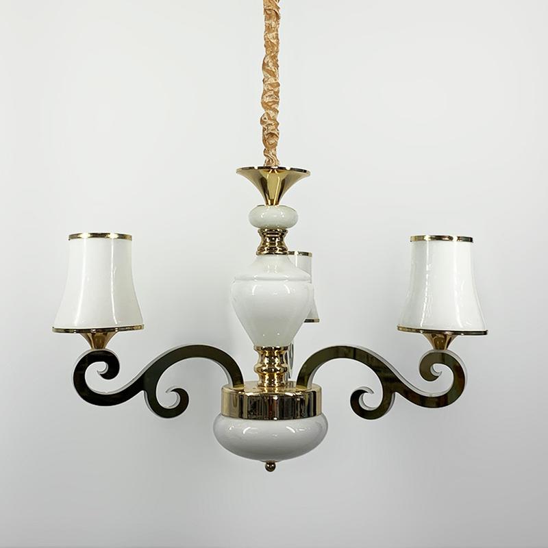 Люстра із світлодіодним золотим корпусом та 3-ма білими плафонами