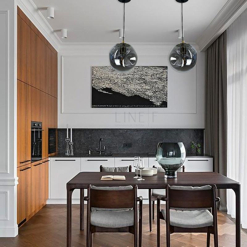 Серія підвісних світильників з "мятим" плафоном у 3-х кольорах скла: графіт, рожеве золото, золото.