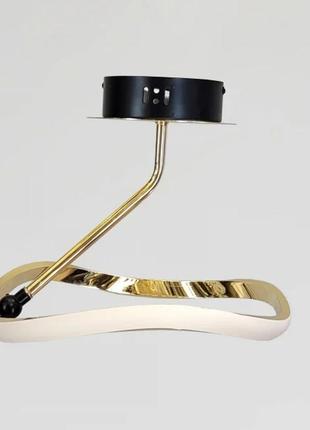 Тип источника освещения: LED тёплый свет 12W Количество источников света: 1 Цвет основания: золото + чёрные вставки Материал рассеивателя: резина Тип крепления на потолок: планка 11,4 см Размер потолочной чашки: внешний диаметр 15 см, внутренний диаметр 12 см, высота 4,2 см. Высота люстры: 25 см Диаметр люстры: 30 см Вес: 0,625 кг Гарантия 12 месяцев