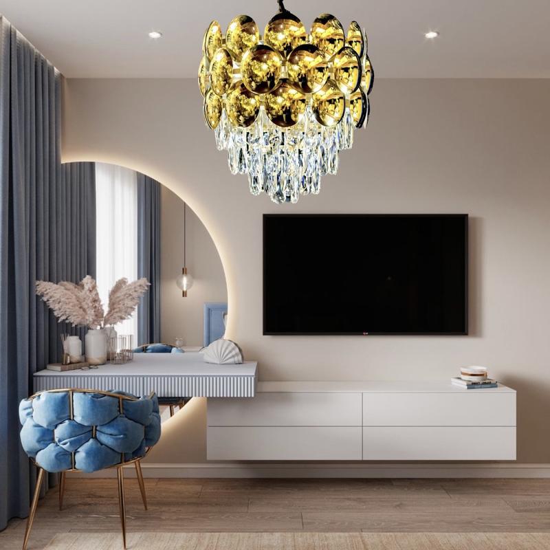 Тип джерела освітлення: E14 220V (без ламп у комплекті) Кількість джерел світла: лампа Колір основи: золото Колір скла: прозорий Тип кріплення на стелю: планка Діаметр: 40 см Гарантія 12 місяців