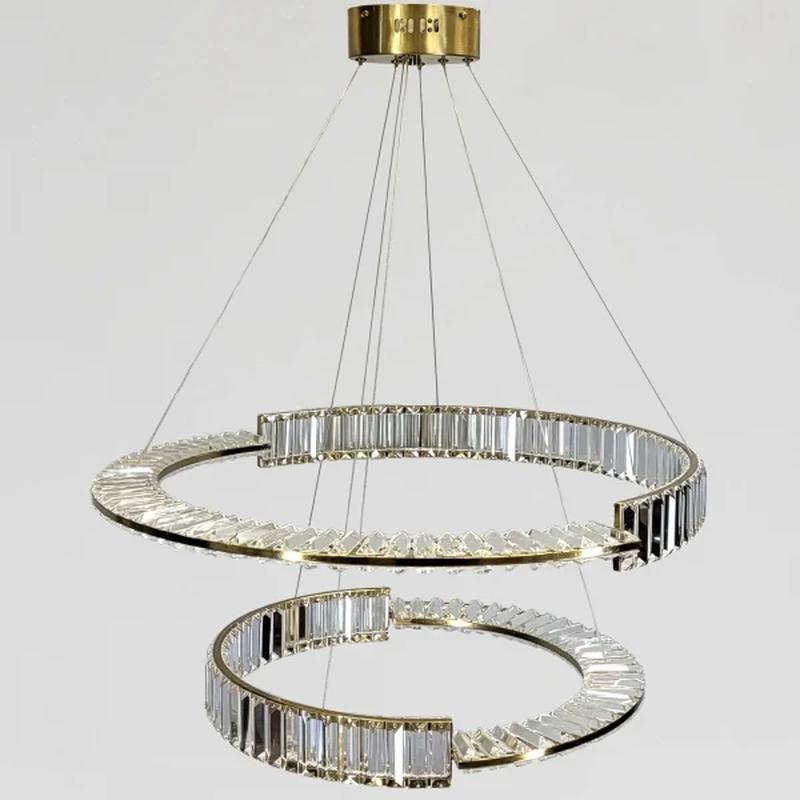 Тип источника освещения: LED 3 режима +пульт+димер 165W Количество источников света: 2 Цвет основания: латунь Материал декора: стекло прозрачное Тип крепления на потолок: крестовина 15,6*15,6 см Размер потолочной чашки: диаметр 16 см, высота 5,7 см. Высота регулируется. Высота кольца: 7,7 см Высота максимальная: 146 см Диаметры колец: 78,1 см, 57,5 см Вес: 8,89 кг Гарантия 12 месяцев