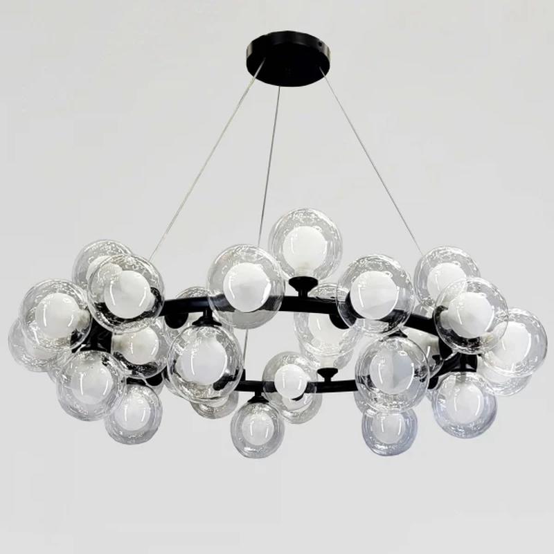Тип источника освещения: G9 220V ( без ламп в комплекте) Количество источников света: 35 Цвет основания: чёрный Материал плафона: стекло Цвет плафона: внешний прозрачный, внутренний матовый Тип крепления на потолок: планка 14,4 см Размер потолочной чашки: диаметр 15,2 см, высота 2,4 см Высота регулируется. Высота люстры: 25,5 см Высота максимальная: 94 см Диаметр кольца: 60,5 см Диаметр по плафонам : 84,5 см Вес: 4,635 кг Гарантия 12 месяцев
