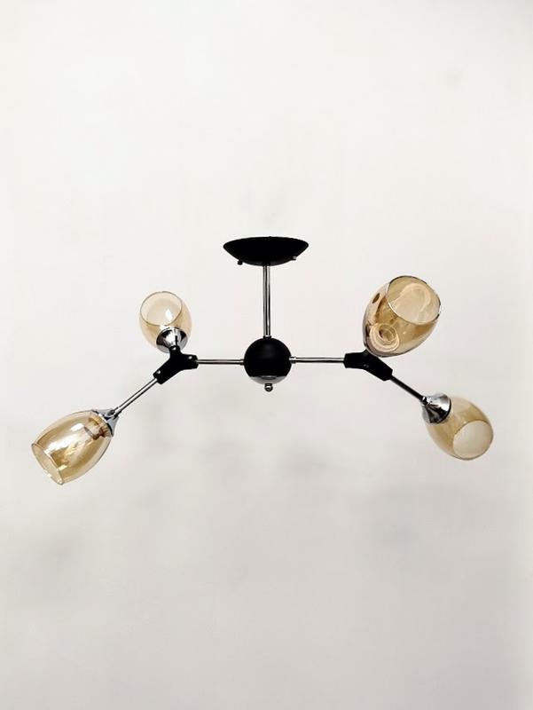 Люстра трансформер молекула в стиле лофт Материал корпуса - металл Цвет корпуса - черный+серебро Материал плафона - стекло Размеры - 75*50*30 см (ориентировочные, зависят от угла наклона плафонов) Тип патрона - E27 Количество ламп - 4 --- Отправка