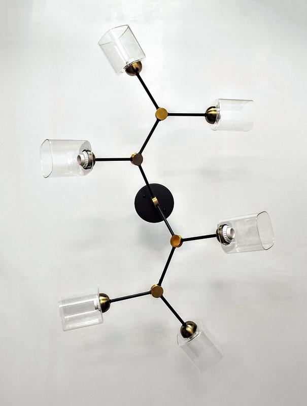 Люстра трансформер молекула в стиле лофт Материал корпуса - металл Цвет корпуса - черный + латунь Материал плафонов - стекло Тип патрона - E27 Количество ламп - 6 Ориентировочные размеры - 110х70х40 см (зависят от выбранной ориентации плафонов в пространстве) --- Отправка любой почтой