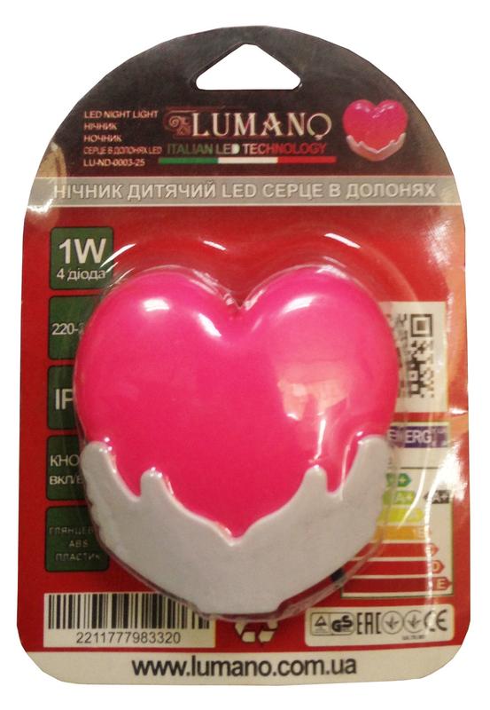 Нічник дитячий led серце в долонях 1,0w lu-nd-0003-25