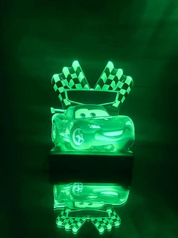 Ночник "Молния Макквин" - это отличный подарок для малыша, в котором можно регулировать цвет подсветки, силу освещенности и режимы работы (постоянный или мигающий). Ночник легко подключить через USB разъем к павербанку, телефонному блоку питания, ноутбуку и т.д. Управление ночником - с дистанционного пульта. Материал ночника - прозрачный акрил, основание - дерево (дуб). (!) Блок питания не входит в комплект ночника.