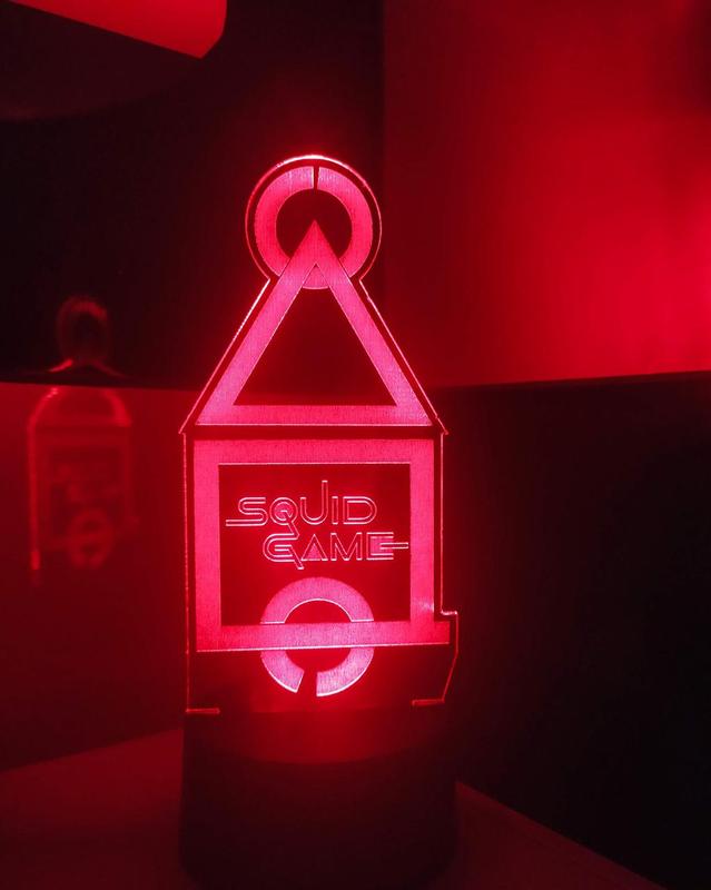 3d-светильник игра в кальмара логотип, 3д-ночник, несколько подсветок (на пульте)