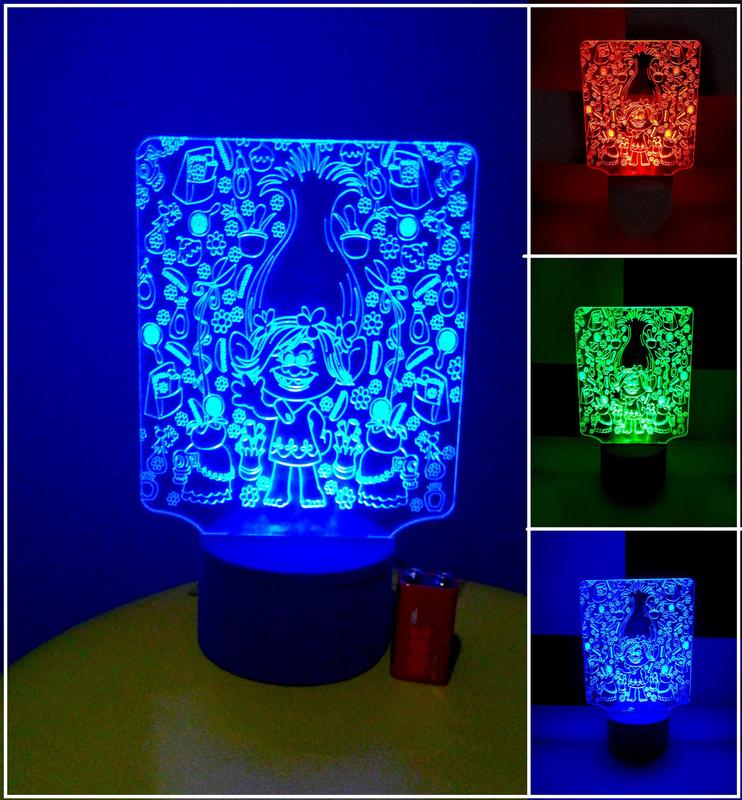 3d-светильник розочка (тролли), 3д-ночник, несколько подсветок (на батарейке), подарок для...