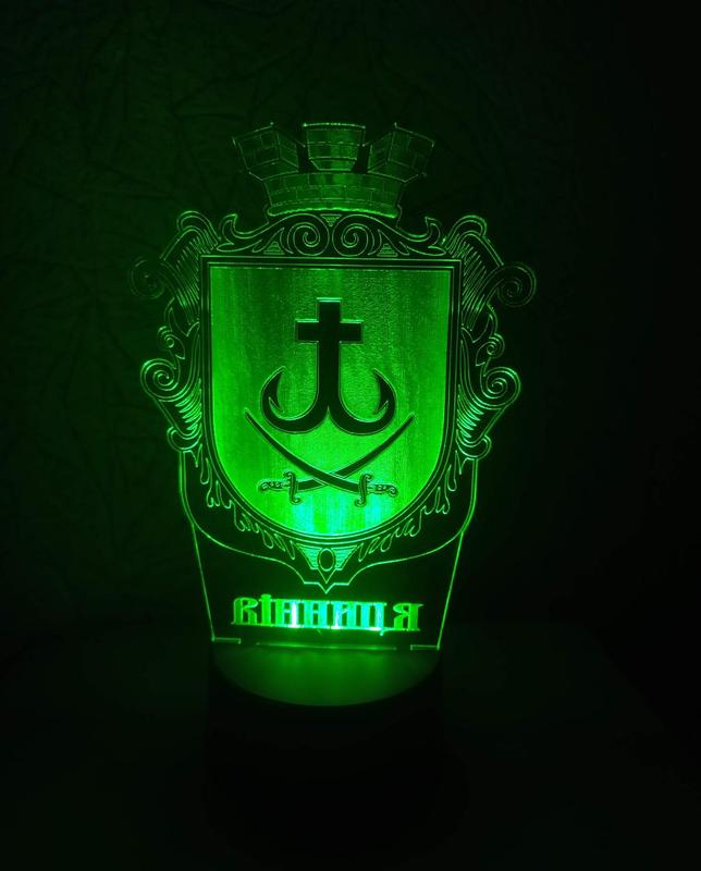 3d-светильник винница герб, 3д-ночник, несколько подсветок (на bluetooth) достопримечатель...