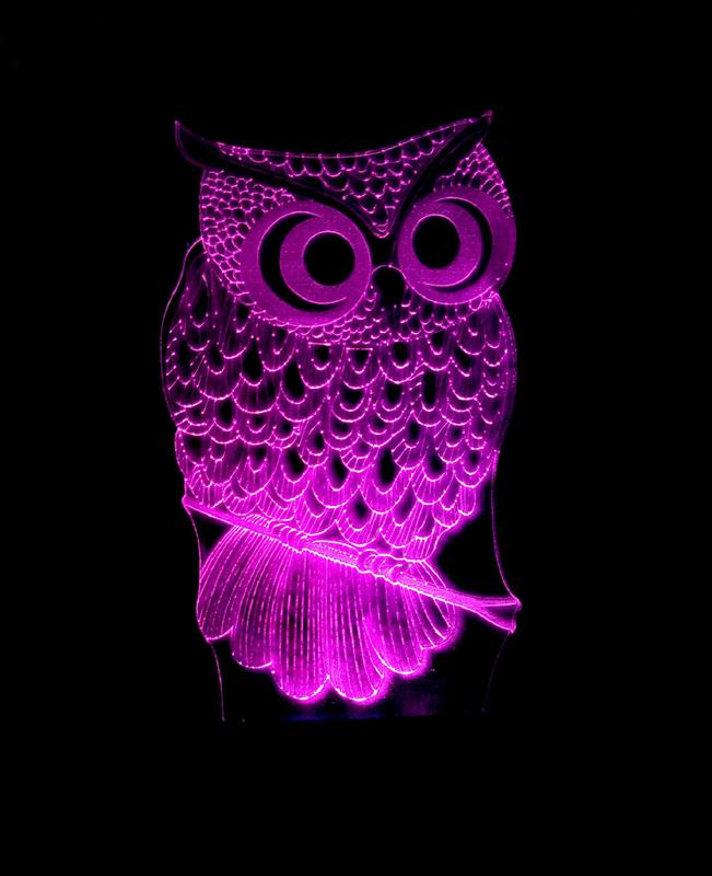 3d-светильник сова 2, 3д-ночник, несколько подсветок (батарейка+220в)