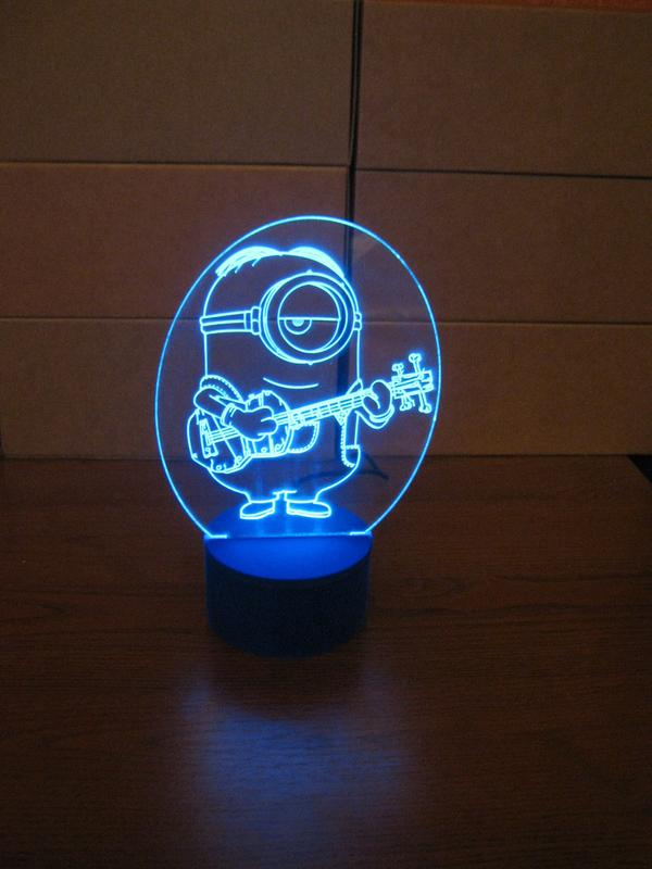 3d-светильник миньон гитарист, 3д-ночник, несколько подсветок (на bluetooth), подарок маль...