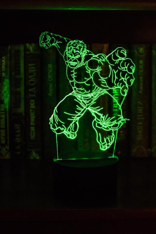 3d-светильник халк, 3д-ночник, несколько подсветок (на пульте), подарок фанату марвел