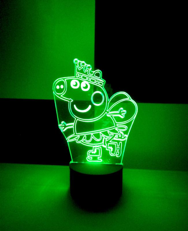 3d-светильник пеппа на коньках, 3д-ночник, несколько подсветок (на батарейке), подарок мал...